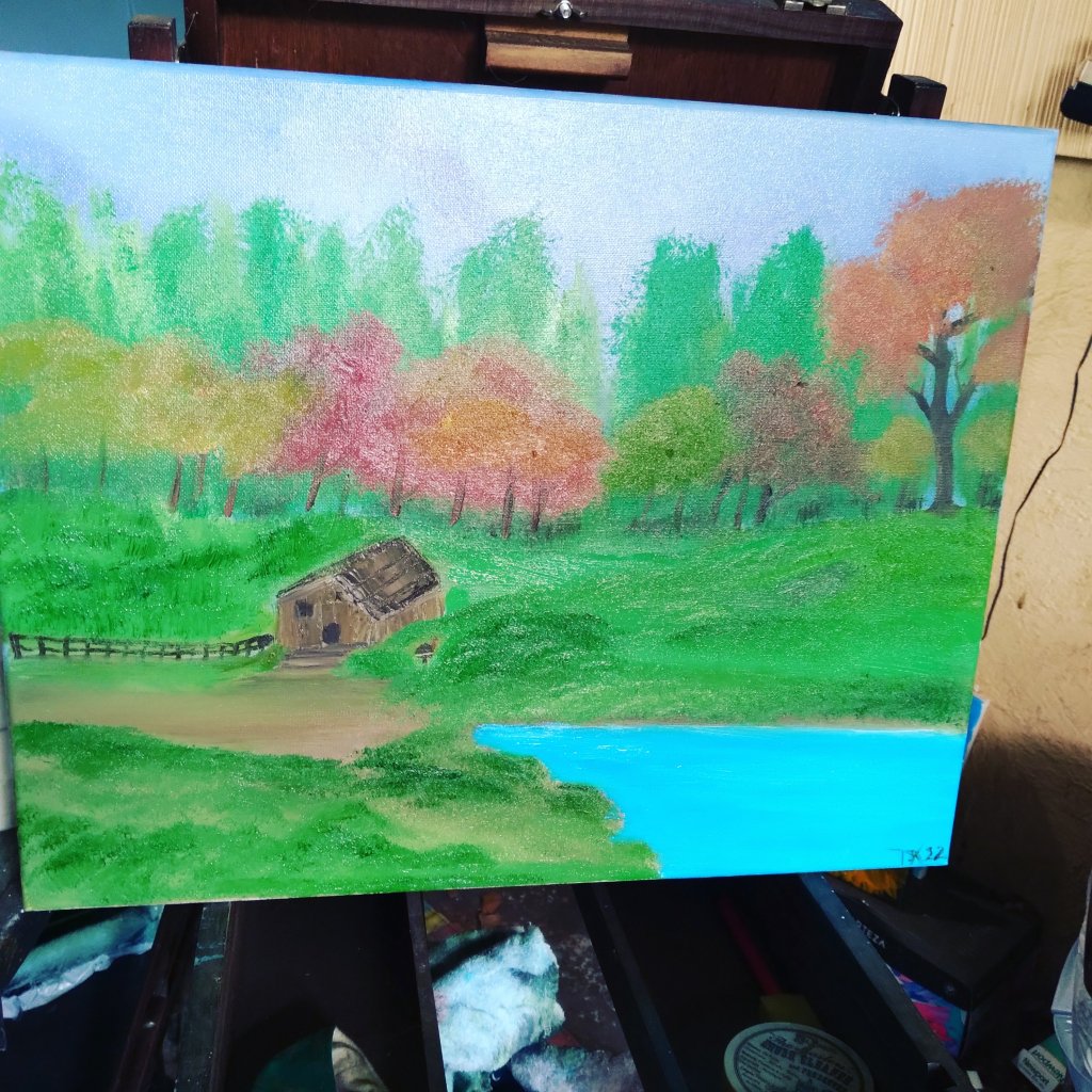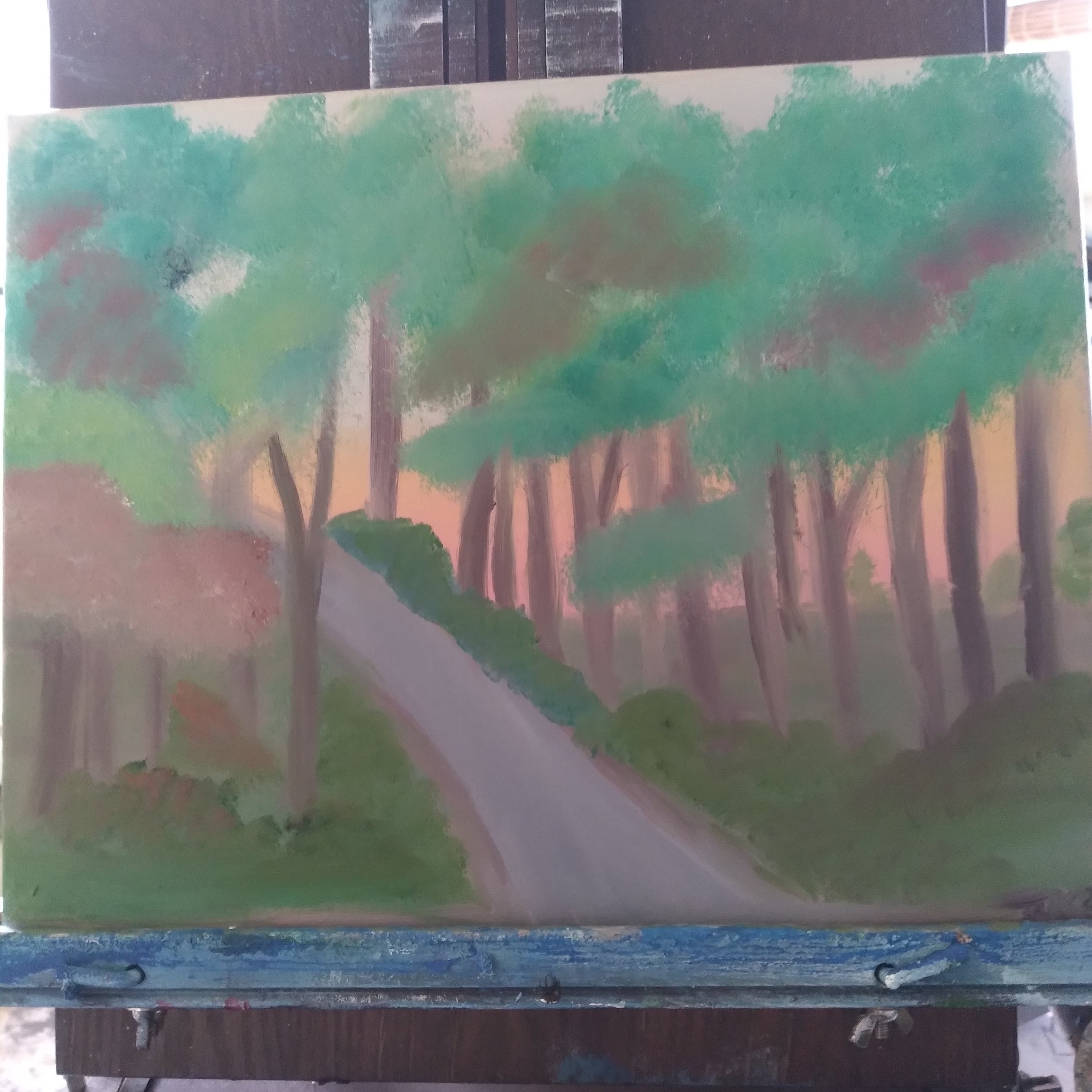 Sometimes,I get visions in my head. The first thing ,I do is paint. Like today for example, I had this vision of the woods.