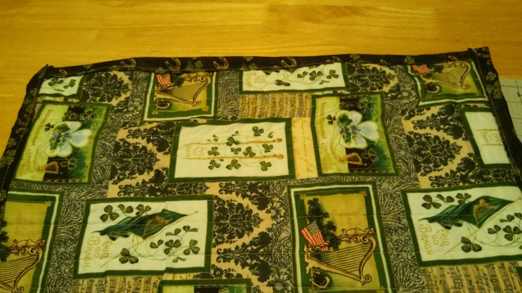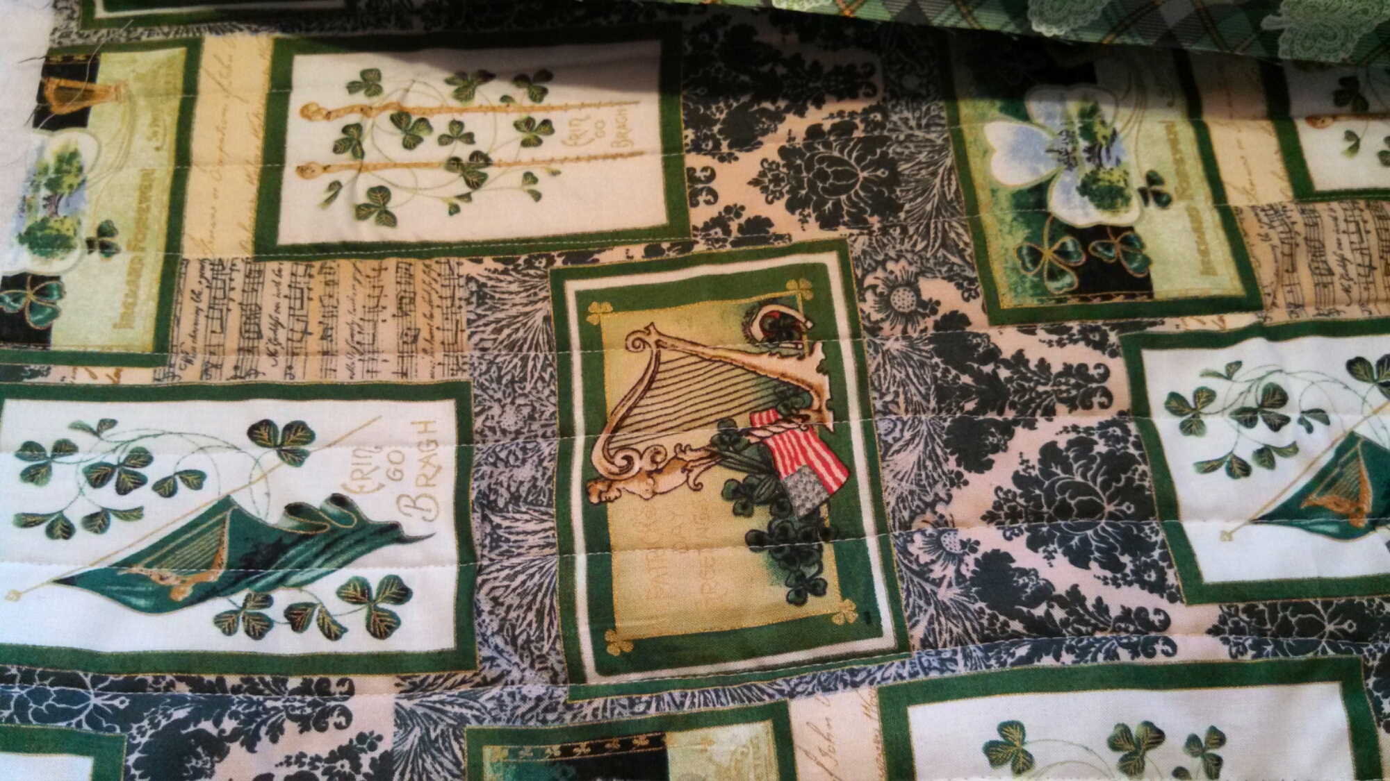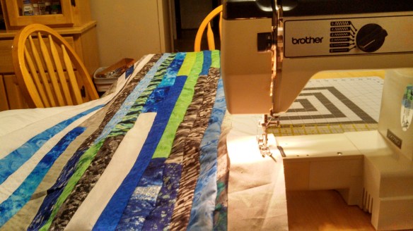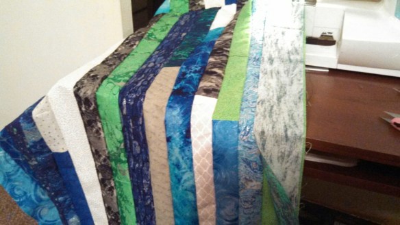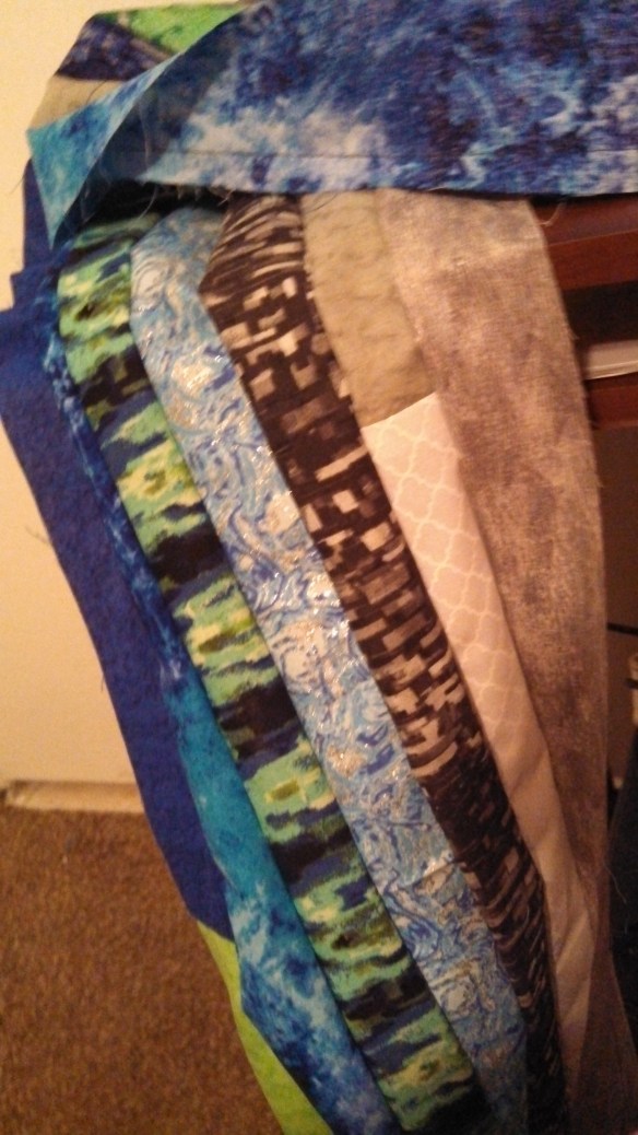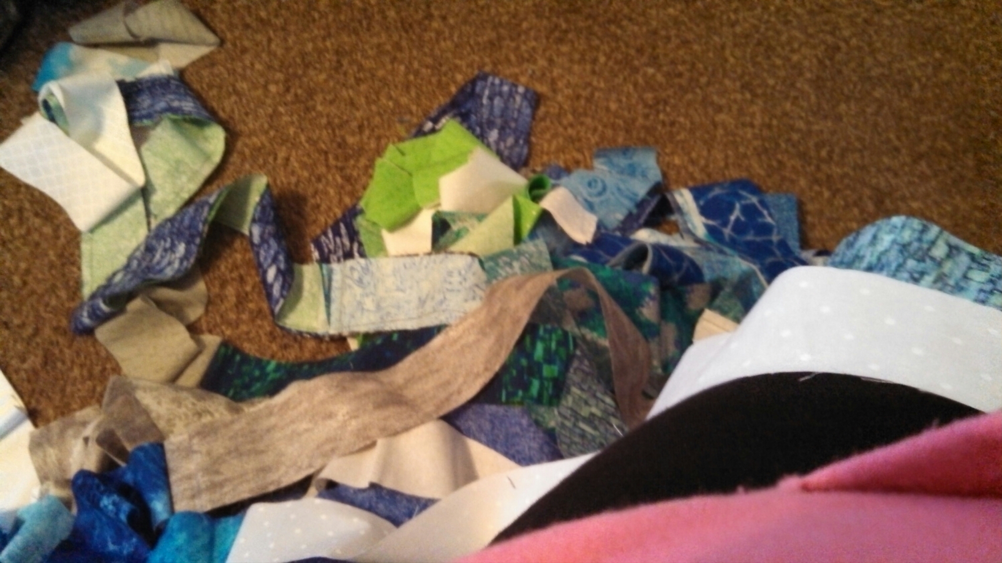 I used 6 yards of light blue and scrapes of other blues..