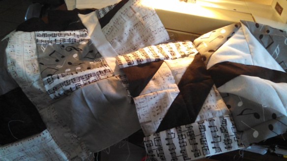 I  made three inch squares and four inch squares… and trying to come up with additions to the quilt..