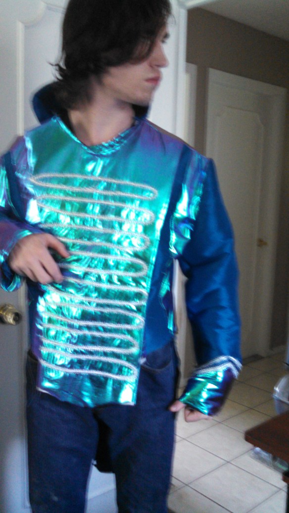 Kyle found his way to the sewing machine….