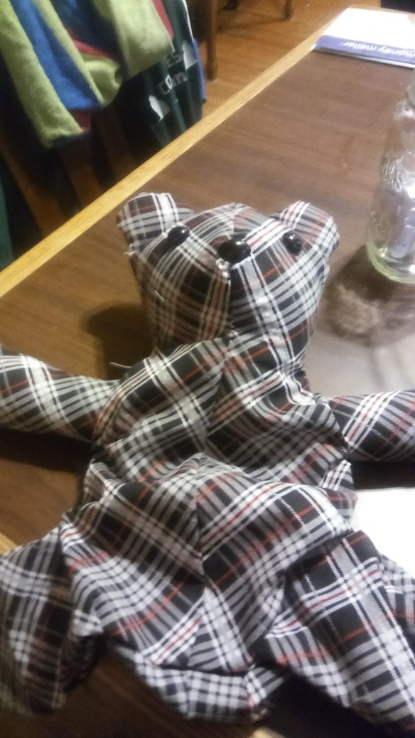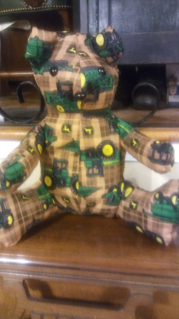 It isn’t my best work…but it felt good to sew…I have to keep practicing the bear before I use my Dad clothes to make everyone a bear