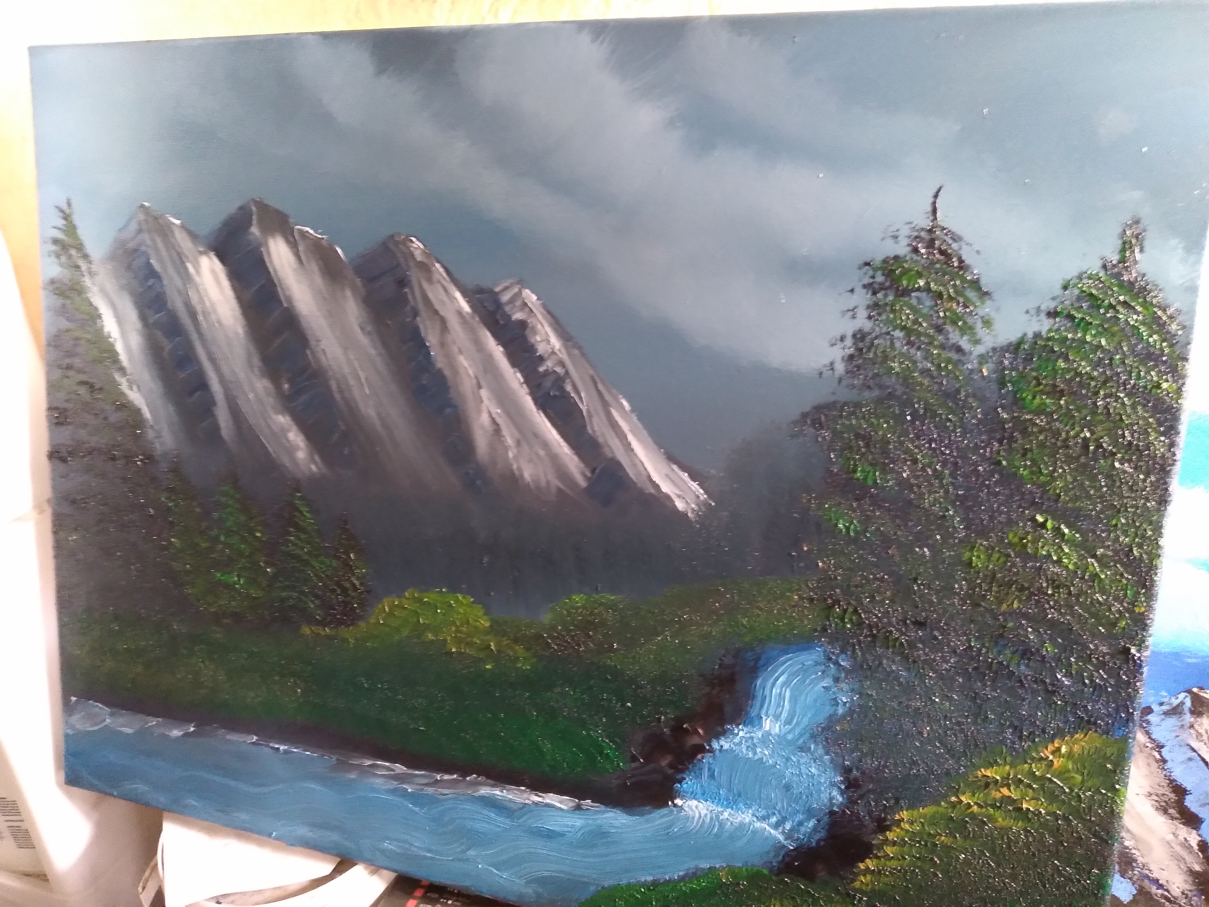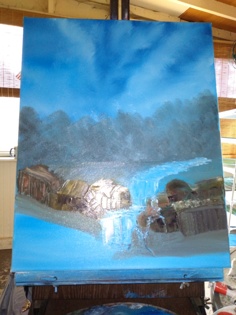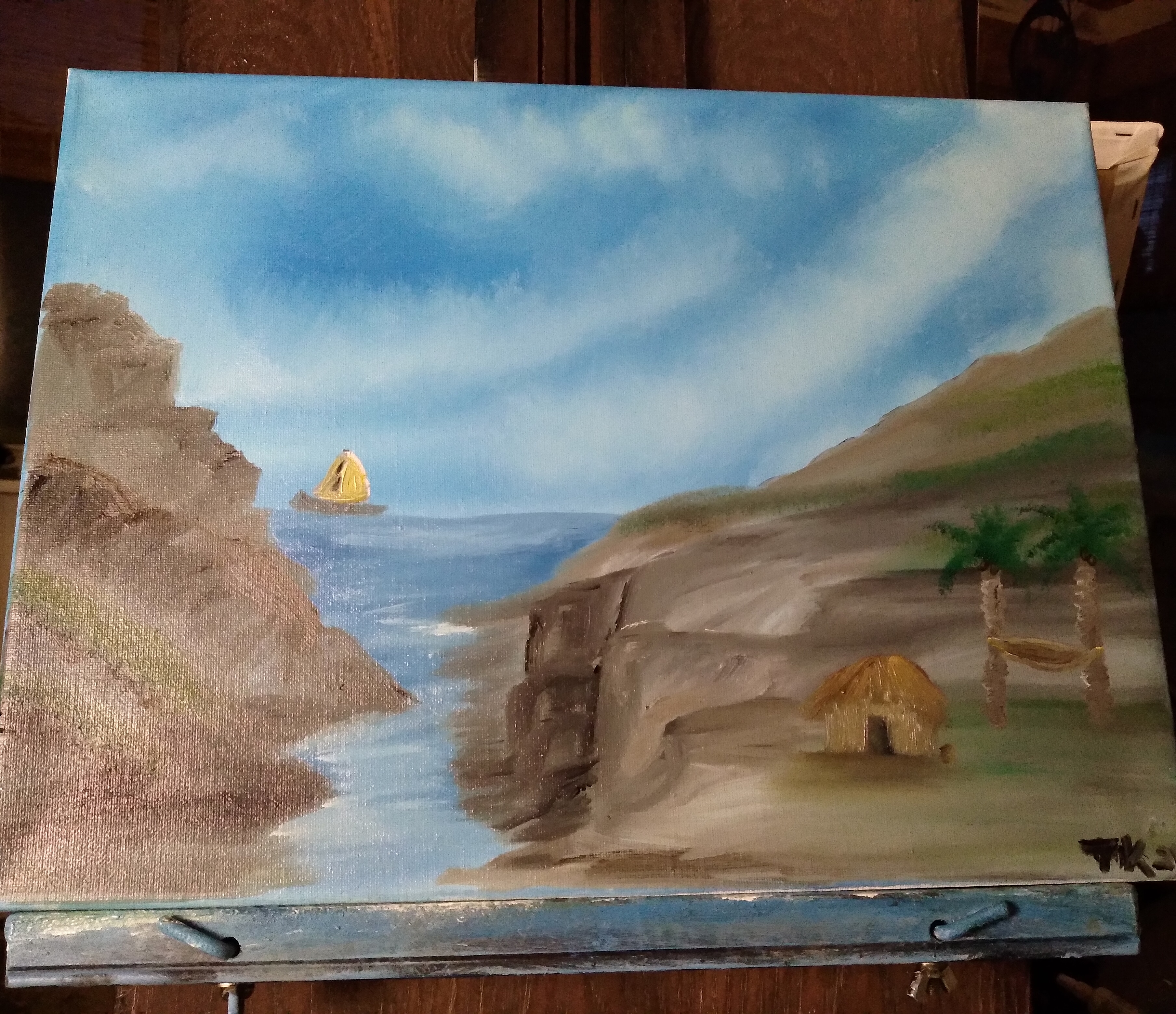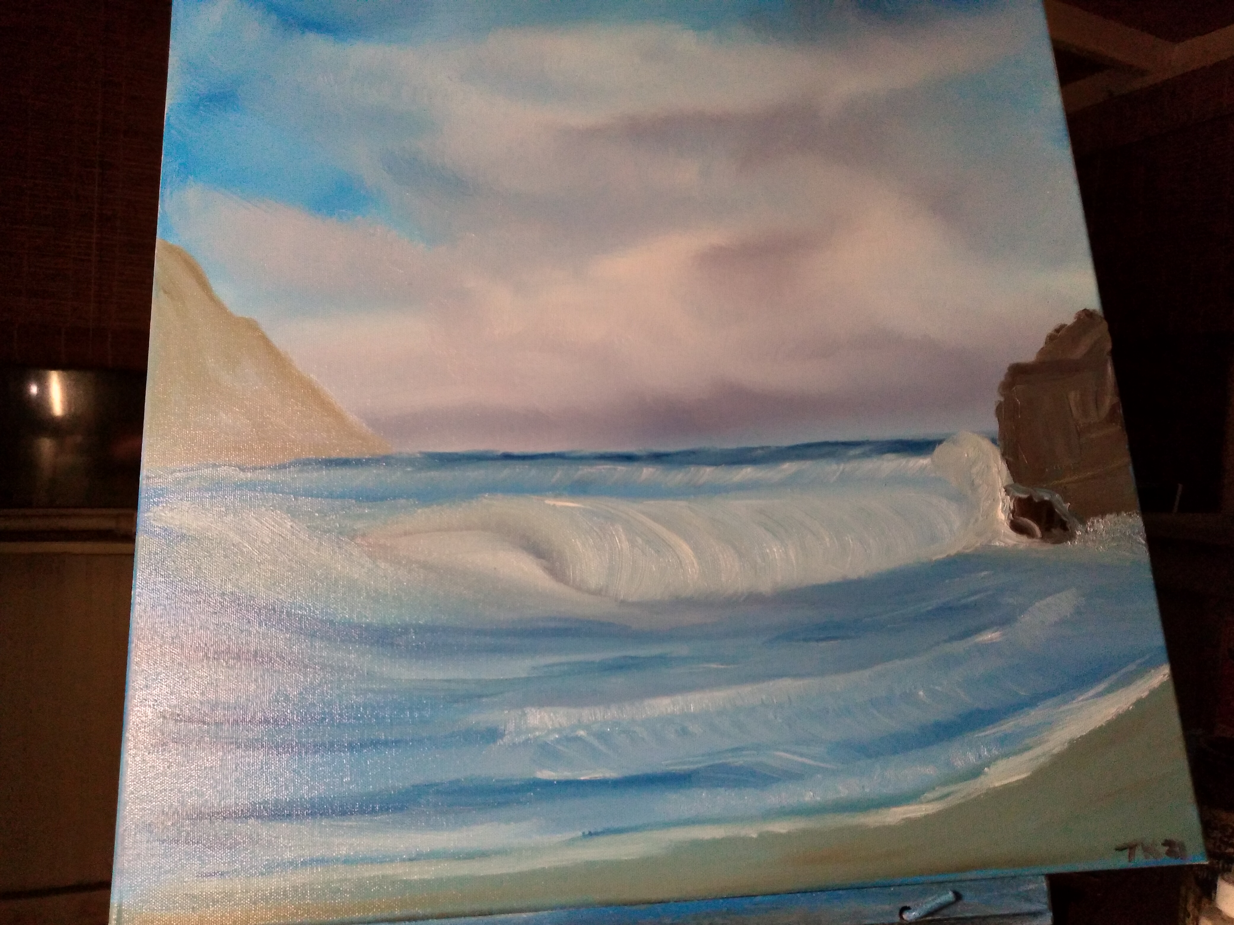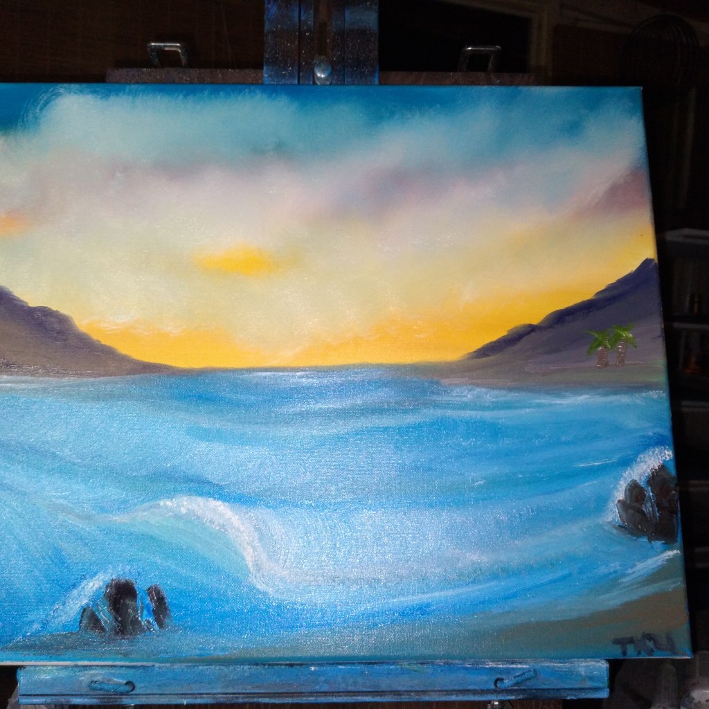 I must want to go the beach.I have been doing a lot ocean paintings. As you can see from the three paintings that I have done.